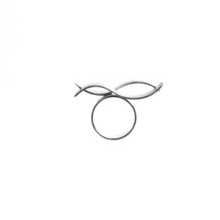 Bague en argent composée de 2 rubans ondulés avec finition brossé sur un large corps de bague finition brillante