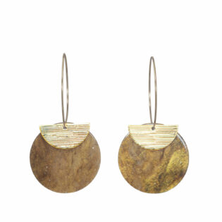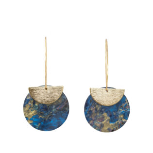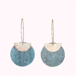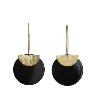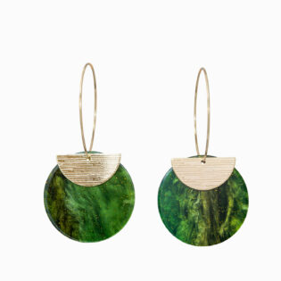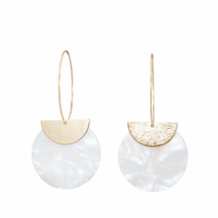 Boucles d’oreilles composées d’une créole en laiton doré à l’or fin et d’un disque en acétate de cellulose superposé d’un demi-cercle en laiton doré à l’or fin