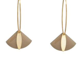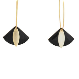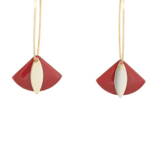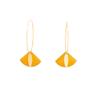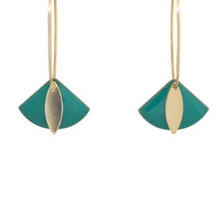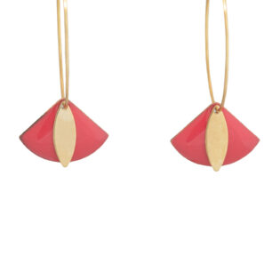 Boucles d’oreilles créoles composées d’un éventail émaillé surmonté d’une petite breloque en forme de navette finition brillante.